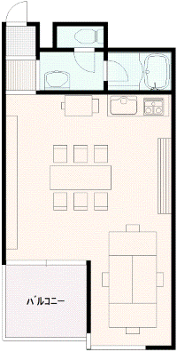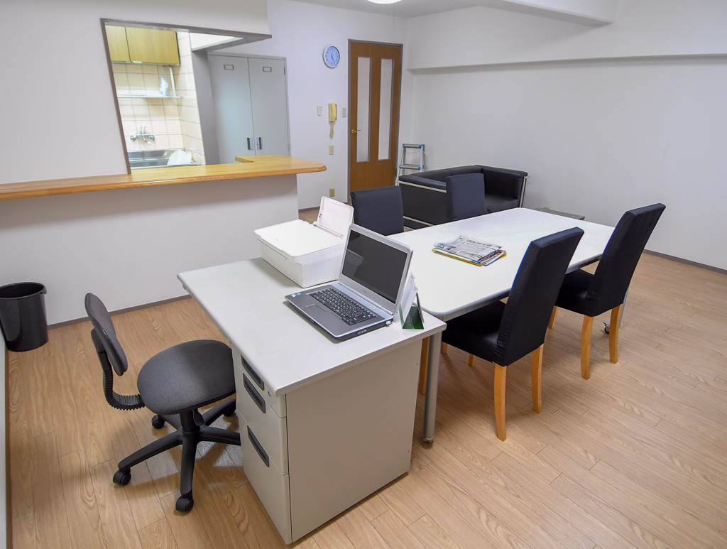 ワークデスクや書棚等の什器はご自身で準備されるとのことでしたので、不要なデスク等は撤去し、事務所スペースとミーティングスペースを確保するため、広いワンルームタイプのお部屋をご用意いたしました。